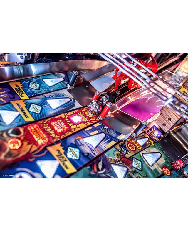 Os flippers Venom da Stern mergulham os jogadores no mundo turbulento do universo Marvel deste anti-herói, com mais de 20 personagens, incluindo: Eddie Brock, Flash Thompson, Gwen Stacy, Peter Parker, Homem-Aranha de Traje Negro, Miles Morales, Riot, Agony, Lasher, Phage, Doppelganger, Hulk Venomizado, Wolverine Venomizado e Capitão América Venomizado. Carnage, inimigo jurado de Venom, coleta códices para despertar Knull, o deus dos simbiontes. Venom deve impedir Carnage enfrentando seu exército de simbiontes e os Infectados para evitar que ele tome o controle do mundo.
