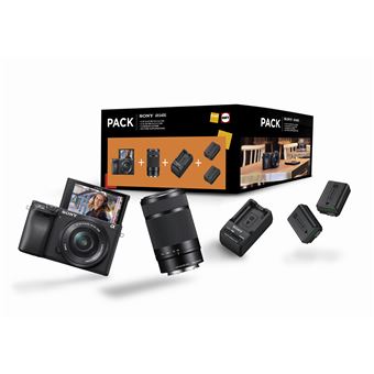 Câmera híbrida Sony A6400 Preta + Lente E PZ 16-50 mm f/3.5-5.6 OSS + Lente E 55-210 mm f/4.5-6.3 OSS + carregador externo + segunda bateria