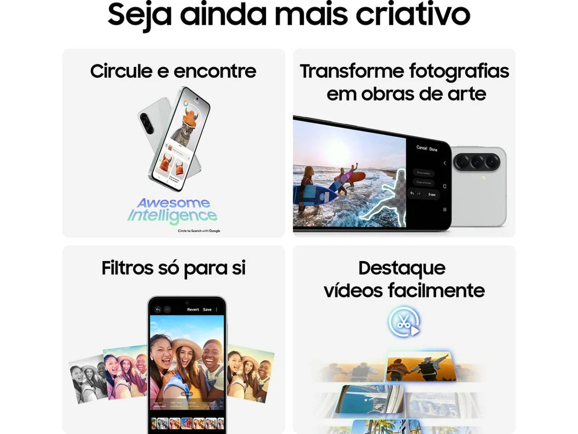 O novo Samsung Galaxy A56 5G chega para elevar a sua experiência móvel. Com um design elegante em Preto e apenas 7.4mm de espessura, este smartphone combina o potente processador Exynos 1580 com 8 GB de RAM para garantir fluidez total em todas as suas aplicações e jogos.
