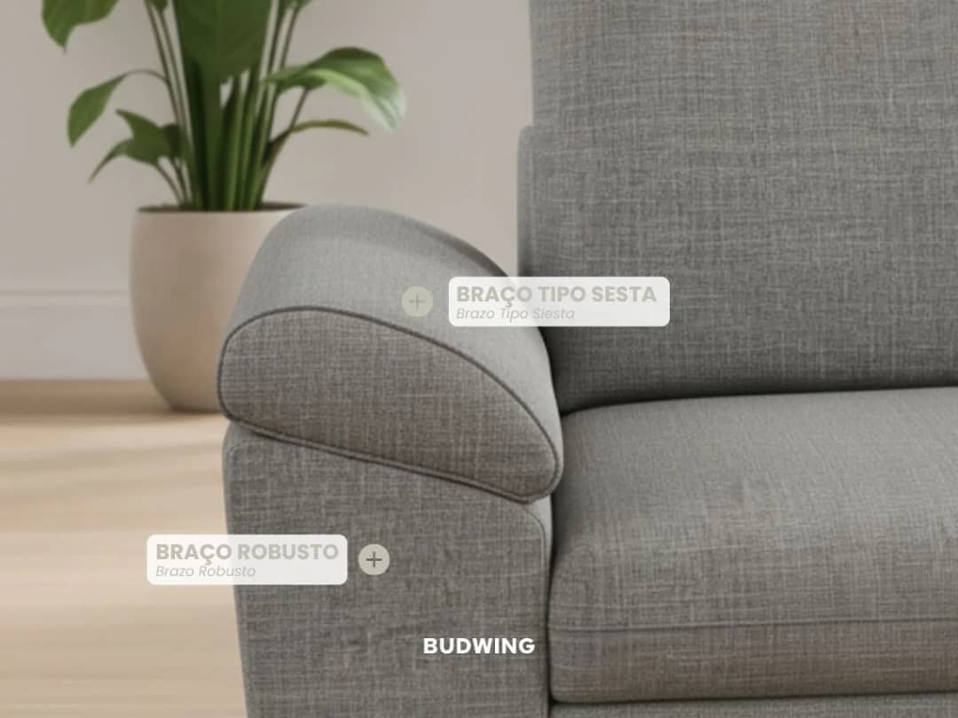 Conforto Premium: Estofado em tecido de alta resistência com assentos de espuma de 28kg/m³, garantindo um suporte ergonómico e duradouro.